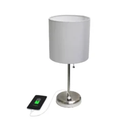 19.5″ Bedside Power Outlet Base Metal Table Desk Lamp In White Fabric Shade – Creekwood Home