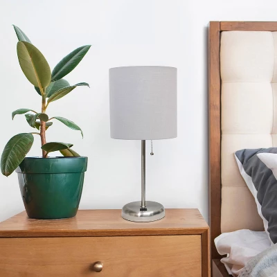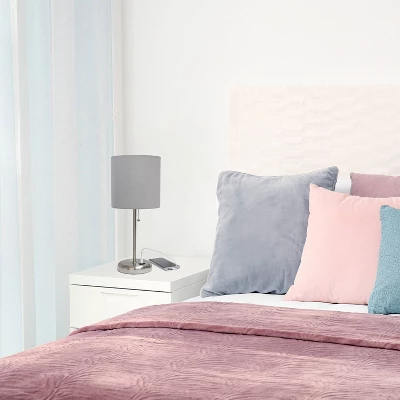 19.5″ Bedside USB Port Feature Metal Table Desk Lamp Brushed Steel With Gray Fabric Shade – Creekwood Home