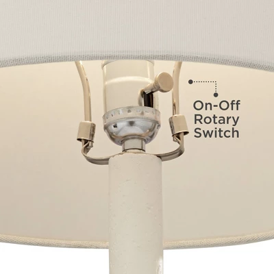 Decorate the easy way with this matching pair of modern table lamps. From the 360 Lighting brand, each lamp features a sculptural base inspired by sculpture and contemporary art. The stacked discs of the base come in a white finish color tone that echoed by the white cone lamp shade on top.