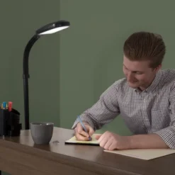 - DIMMABLE – The included energy-saving LED bulb of this reading lamp lasts up to 30,000 hours and can be dimmed to 4 brightness settings to fit various activities or lighting moods. Use the touch button on the head of the sun lamp to modify the brightness.