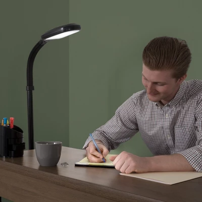 Bring stylish and modern lighting to your home, office, or workspace with the Floor Lamp by Lavish Home. This attractive reading lamp has a contemporary black finish with a matching cord for versatile placement. With a 1400 lumens 17W LED bulb and 6500K color temperature, this dimmable standing lamp projects natural light, helping to alleviate eye strain. The LED lamp features a gooseneck arm that provides flexible height adjustment and unlimited angle choices, making it easy to focus the light exactly where you need it.