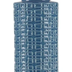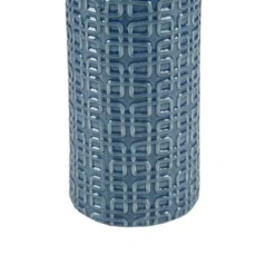 The INK+IVY Jayda Geometric Ceramic Table Lamp offers a sophisticated modern touch to your living room decor. This table lamp features a cylinder-shaped, blue ceramic base with a patterned design that creates dimension and texture. The round drum lamp shade softly filters the light to create a warm and welcoming ambiance in your space. Illuminate your living room and give your home a chic contemporary update with this ceramic table lamp. Handle with care. Spot clean only.