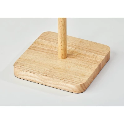Illuminate your space with the clean lines, monochromatic color scheme, and natural materials of the Ellis floor lamp. The lamp features a natural wood square base with softened corners. The natural wood continues up the tall round stem that varies in diameter for a unique silhouette. Crafted of natural woven paper and trimmed with beige fabric along both the top and bottom, the drum shade adds stylish texture. The shade diffuses light from a 150W bulb to fill your space with an inviting, warm glow that can be adjusted between low, medium, and high to suit your brightness needs. Looking for color contrast in your décor? The Ellis floor lamp is also available with black wood finish and black fabric trim. Complete your space’s décor with the coordinating Ellis table lamp.