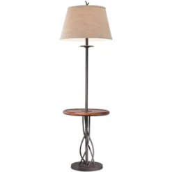 - Floor lamp with table – shelf ideal for sitting or living room use. Convenient space-saving design can be used as an end table or nightstand. From the Franklin Iron Works brand.