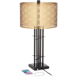 Possini Euro Design Modern Table Lamps 30″ Tall Set Of 2 Brushed Steel Black White Linen Rectangular Shade For Living Room Family Bedroom