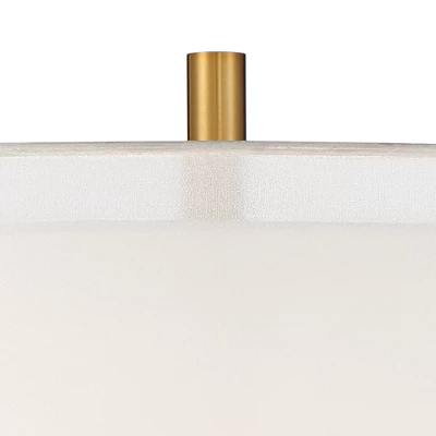 Possini Euro Design Roxie Modern Floor Lamp Standing 65 1/2″ Tall Brass Black Metal Sheer Linen Double Drum Shade For Living Room Bedroom Office House