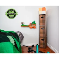 Let one of the most useful items in Minecraft become a practical oversized accessory for your space with this Minecraft Torch Shelf & Floor Lamp. Standing 62.5″ tall (over 5 feet!), this Minecraft torch will keep hostile mobs from forming, but you may end up with friendly mobs gathering to check it out. The body of the torch cleverly holds 3 storage bins for all your toys, books, figurines, clothes, game accessories, snacks – whatever you don’t want cluttering up your space. The torch’s head is a removable lamp shade. Obviously, with a piece of furniture that’s as big as you are, you don’t even need to have this light on for it to proclaim your fandom.